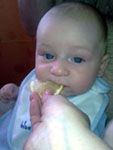А у нас 4 зуба на подходе, причем по бокам (я конечно могу ошибаться, но похоже что глазные лезут), а сверху, напротив двух уже имеющихся нижних, пока не видно полосок беленьких.[/SIZE]