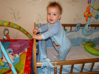 сына то мой еще толком сидеть не умеет и ползать, зато уже третий день на ножки встает, я когда увидела аж прыгала от счастья, не знаю, может массаж помог. вот он озорник