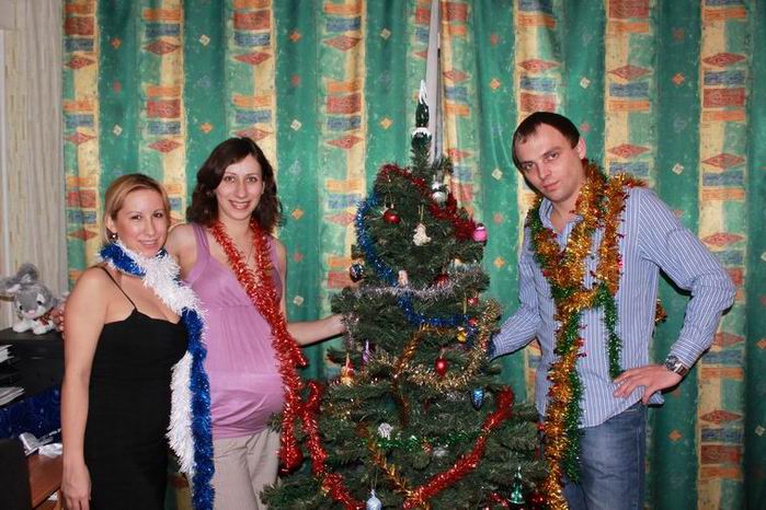 Девочки, давайте новогодние фотки выкладывать для поднятия настроения) Правда, я себе уже на фотках не нравлюсь почти нигде, таким бегемотиком кажусь. Вот это мы с мужем и пузиком и с друзьями, с которыми отмечали. |