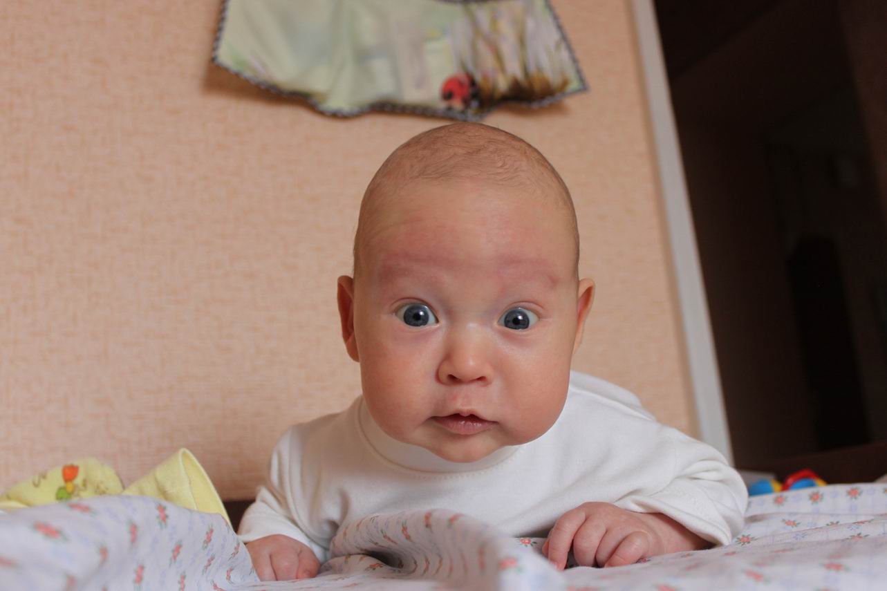 Девчонки, я над Диманом угораю - по утрам включаю ему мобиль, а сама умываться иду - так он с игрушками болтает вовсю, агу-агу, так забавно)А вот мы в 2 месяца, удивляемся чему-то)