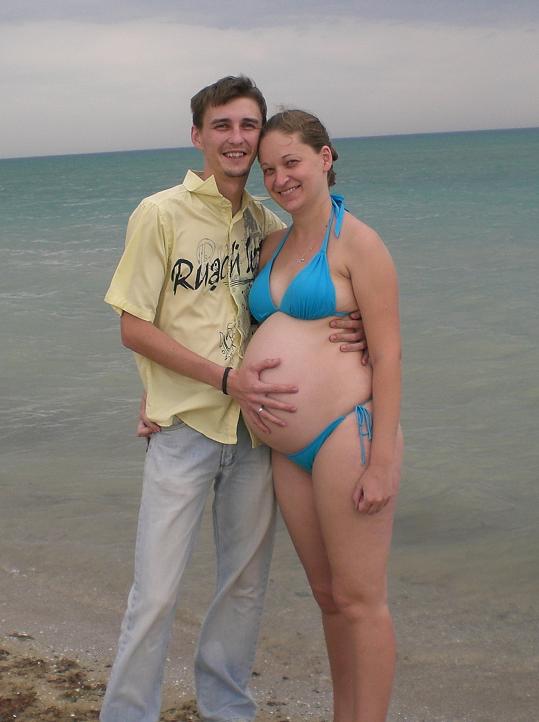 Купаем пузик и с папой. Первая фотка втроем!!! Море у нас посимпатичнее обычно это просто пасмурно, и даже дождик в конце закапал