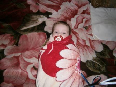 У меня доча спит по разному,в общем закутаная в пледике,а иногда качаю,качаю не спит,на руках спит,а в кровату ложу,просыпается,я ее раскутываю засыпает сразу!
