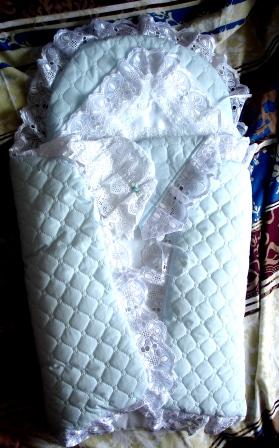 вот, девочки, и я похвалюсь своим конвертиком, правда, он не очень модный-всё-таки ровно 5 лет назад покупала, но мне нравитсяв наборе ещё одеялко такое же(я его в коляску планирую подстилать),и 2 шапочки