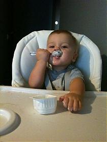 Хих) А у меня если ложку не дашь, отворачивается и вообще есть не будет! Так что приходится терпеть свинячество! А мой порося и на пол накидает порой, и на большой стол грязной ложкой залезет скатерть запачкает, и маме частенько переодеваться приходится после еды ребенка! |