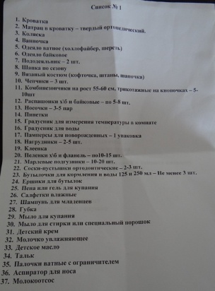 А насчет списка покупок, у меня дома лежит Список 1 и Список 2, в одном 37 наименований покупок, в другом 25. Это в каком-то специальном магазине брала, лежали распечатанные, да и в обменке сзади почти такой же список всего для новорожденного написан. Остается только готовить денежки и вперед