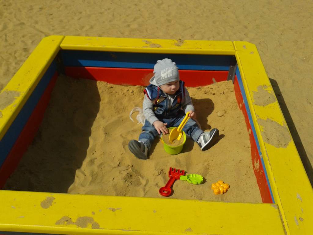 Я своего чего-то боюсь еще в песок пускать, хотя на море хочу взять. Наестся же блин песку этого. Мы его на речку брали, хоть вода и холодная, но понравилось ему ножками топать и ручками хлопать по воде |