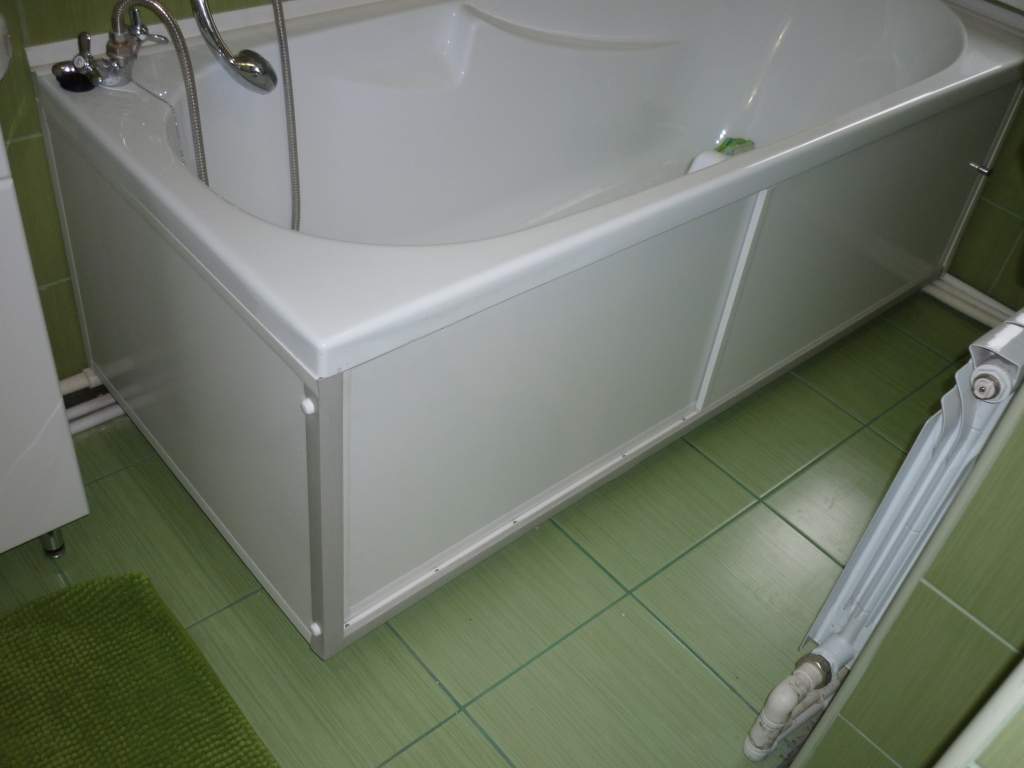 У меня экран под ванной с дверками, он из одного комплекта с тумбой и зеркалом.