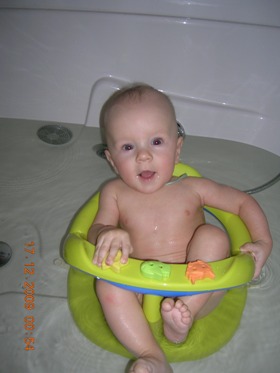 Ляляня в стульчике уже понравилось, но не долго, потом ему плавать хотелось.