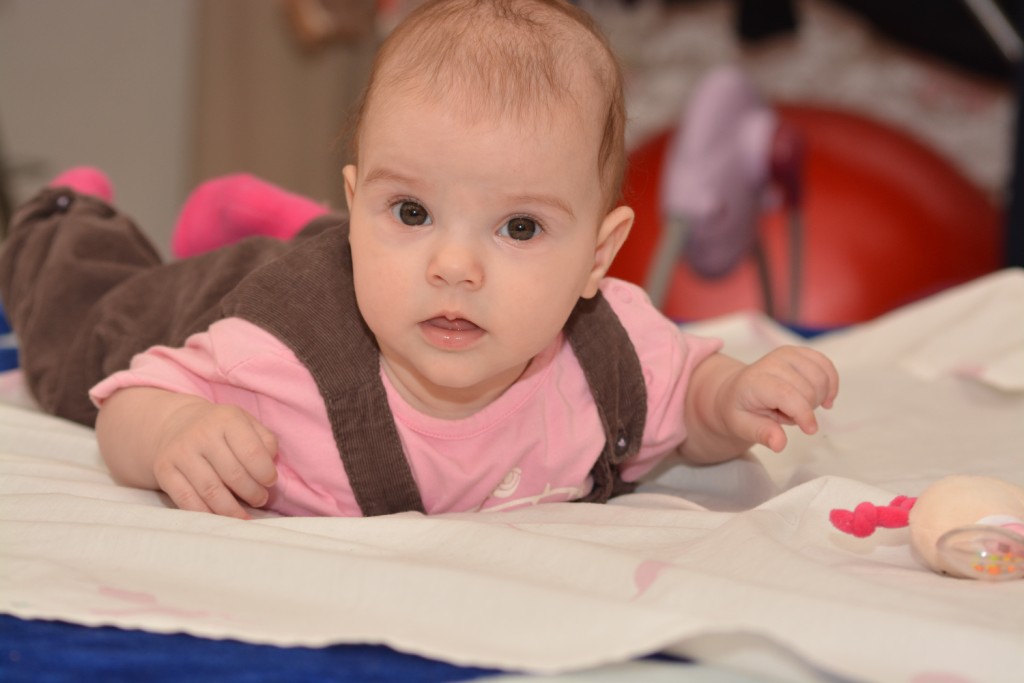 Она до массажа и физио не могла лежа на животике на локти ручки ставить и все время их в стороны разводила и выпрямляла, а сейчас уже лучше ручки ставит. Тут у нас даже не столько ручки, а в грудном отделе мышцы зажаты как бы были (как невролог сказала)