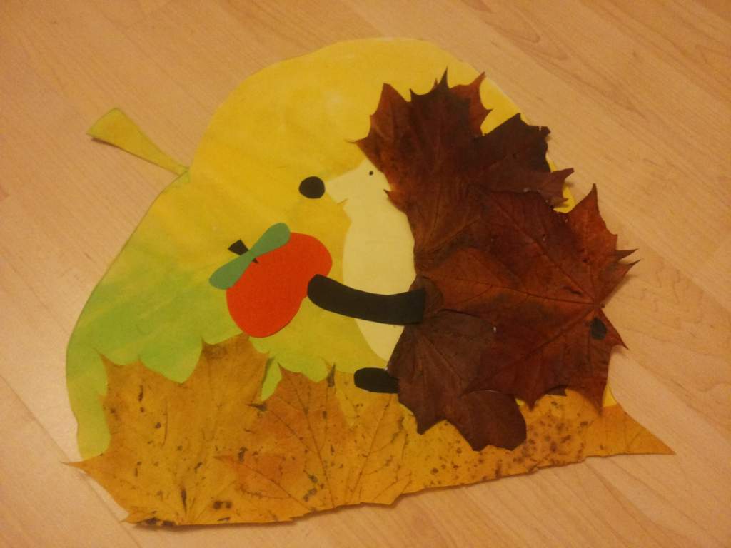 Да, Денис сам все клеил. Я только вырезала ему все и показывала, куда приклеить. Но когда он понял, что это ежик, руку и ногу сам налепил))