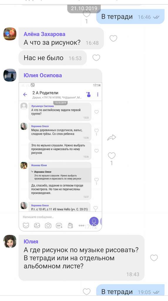 Больше в общем чате спрашивают, без учителя который А дз скинуть недолго и несложно Она детям на доске что пишет (чтоб те переписали), просто фоткает и нам скидывает Конечно, должно быть у учителей свое личное время, поэтому ее и не дергают особо Ну не знаю,как в личке, а чат не жужжит без конца Если учителю удобно так,почему нет? ![]() Надоест — удалится из чата)) Но она сама предложила так нас информировать о домашке. Значит, удобно