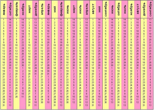 Мне девочка из августят скинула таблицу как рассчитать дату родов (но там не как обычно по М рассчитывается), а по другому!