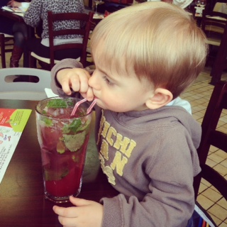 а это мы заехали на выходных покушать, и Никитка приватизировал мамин мохито))