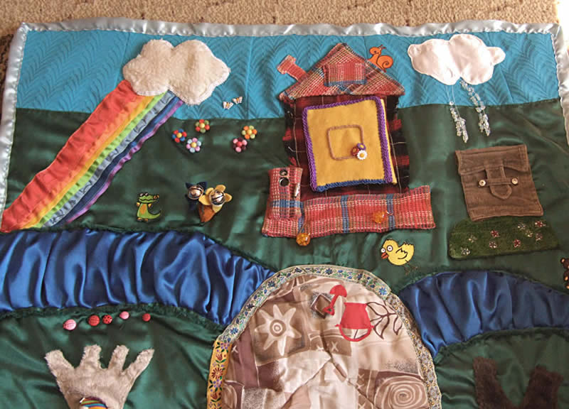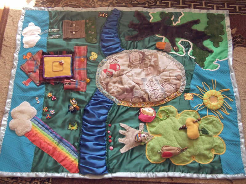 Вот такой развивающий коврик сшила для своего ребенка. Размер примерно 110Х90 Он нашит на плотное одеяльце, чтобы не сминался.