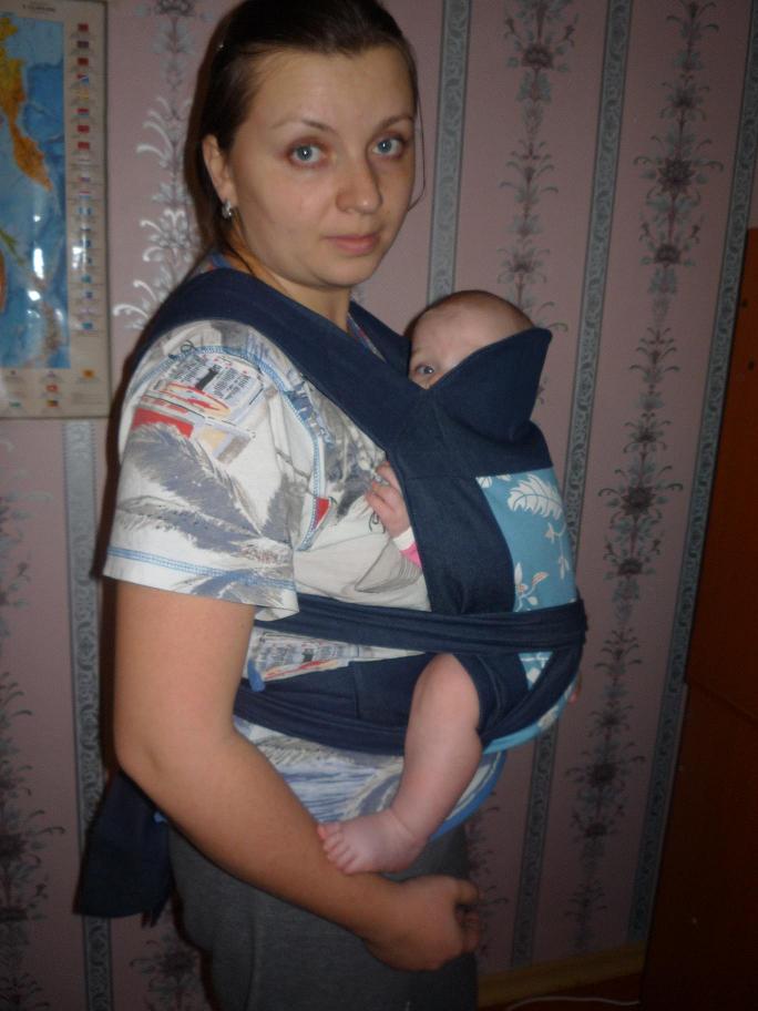 А мы наконец получили слинг. Моему счастью нет предела. Сын в нем кажется легче чем есть на самом деле. Будем понемногу привыкать. Попробовали посадить его, так сначала повозмущался от необычности ощущений, а потом вроде ничего)))