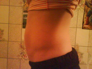 На фотках такой маленький,а мне большой уже кажется,непривычно на месте впуклости иметь выпуклость. Кубики на 8 неделе уже расплылись, надеюсь вернутся потом.