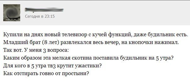 - Ты будешь все дни проводить в поле, давать молоко, кормить своих телят и семью фермера. За это я дарю тебе жизнь длиною в 60 лет. - За что мне такая адская жизнь на 60 лет? - возмутилась корова, - мне хватит и двадцати, а остальные сорок оставь себе! И Бог согласился. Во второй день Бог создал собаку и сказал ей: - Ты будешь все время сидеть у ворот своего дома и облаивать всех проходящих мимо. Дарю тебе жизнь длиною в 20 лет. - М-да, многовато для гавканья, - расстроилась собака, - мне хватит и десяти лет, а остальные забирай назад. Бог опять согласился. И вот на третий день Бог создал человека и сказал ему: - Ешь, спи, развлекайся и наслаждайся жизнью, но сроку на это даю тебе 20 лет. Человек возмутился: - Что?! Только 20 лет? Знаешь что, Бог, я беру свои 20 лет, потом 40 лет что корова тебе вернула, и еще 10 лет, которые отдала собака. Семидесяти лет мне вполне хватит, договорились? - Ну, будь по-твоему, - вздохнул Бог. Вот так и сложилось, что первые 20 лет жизни мы спим, едим и развлекаемся, следующие 40 лет вкалываем, чтобы прокормить свою семью, а в последние 10 - сидим на крыльце и облаиваем каждого кто проходит мимо. |