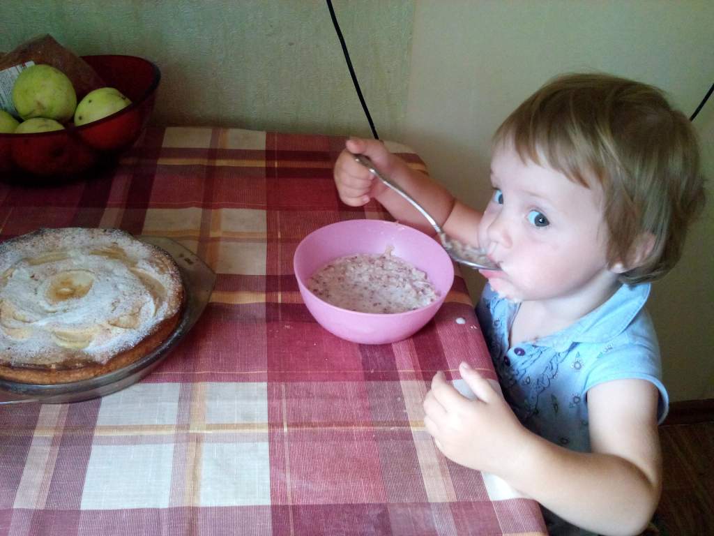 А мы сегодня с дочей решили папу порадовать, приготовили ему шарлотку, а дочери кашку гречневую...