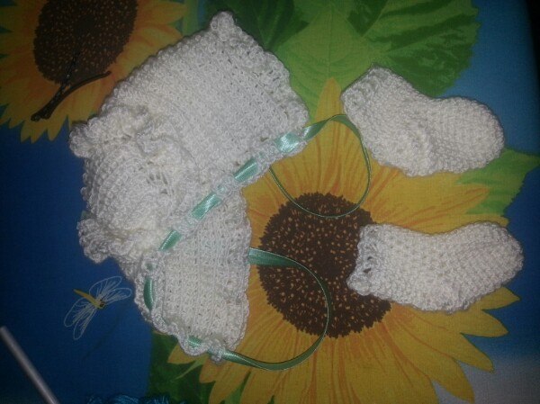 Таааак, пробую фотки загрузить) Коляска, за неё не распакованая ещё кроватка и матрасик. Бельё постельное-это то, что с собачкой. Костюмчик, комбез и конверт на выписку. На конверт хочу ещё атласный белый бант повязать