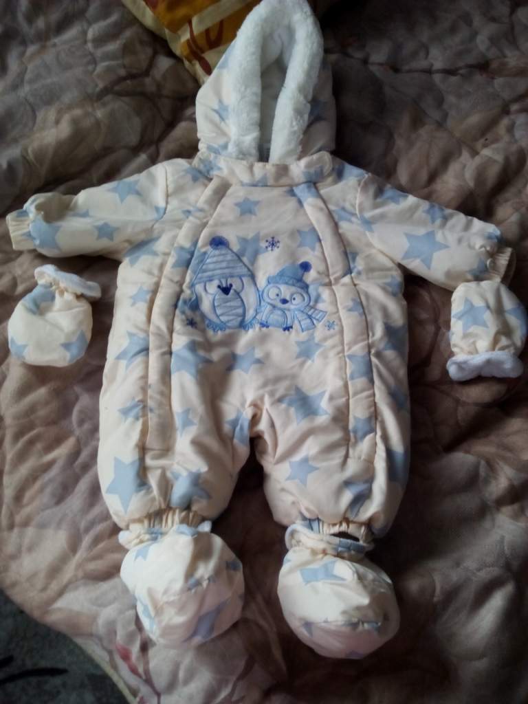 Наконец я дошла до малышковых вещей. На зиму у нас имеется комбинезон от 0 до 3 мес, это уже хорошо, а вот на выписку вообще ничего нет.