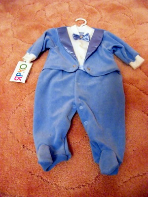 я вообще поражаюсь над тем, как природой все продумано и предусмотрено. Вчера ток говорила маме, ну вот как так пузик держится под силой тяжести и не падает до нужного момента?)) а вообще, каждая неделька и происходящие во время нее процессы в нашем теле и тельце малыша-это просто чудо.. особенно помню, как прочла в брошюрке, что в 8 неделек по-моему, малыш уже мог бы стоять на мизинчике у папы))такой вот мальчик-с-пальчик)) кстати, удивляет то, что когда вижу по телевизору, например, в кино, или читаю о том, что малыш родился, прям слезы текут и в сердце что-то сжимается. А как-то на дороге увидела машину с надписью "реанимация для новорожденных", заревела прям на улице))))в общем, гормоны, однака)) а это я не смогла удержаться-купила первый фрак малышу)))с бабочкой)) |