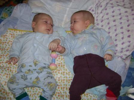 Ой, такие милые малыши!! и уже общаются! ну надо же, такие маленькие и уже интересуются друг другом! фантастика, я думала, что они после года начнут друг друга воспринимать, а оно вот как бывает! Здорово!