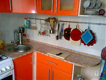 У нас кухня в классическом стиле - деревянная. Столешница тёмно-зелёная. Мне нравится. Единственный недостаток - так и не нашлось места для прихваток и полотенец, так они и висят на ручке дверцы, меня это дико раздражает, но крючки приделать некуда. Вообще, само помещение кухни у нас не оч.большое, 9м, да ещё и не четырёхугольная она, а пятиугольная.
