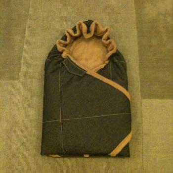 На досуге тут сшила конверт) слизала с Lodger-а)) такой же джинсово-флисовый, 2 в 1 - конверт и коврик)) смотрите какой) Это в разложенном виде (как коврик) |