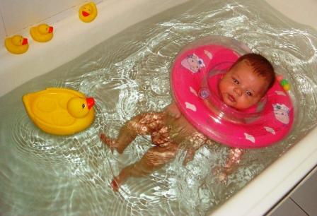 Я беременная на нём прыгала, видимо сыну так родны те ощущения остались, требует прыгать теперь, спина отваливаеся и подташнивает от него уже))) сам то один он не хочет, исключительно на ручках у мамы. А вот плавать он любит сам))) с кругом