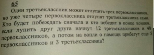 Муф, это реально из задачника??????? капец.......скоро в задачках план делить начнут и время приготовления герыча высчитывать...не удивлюсь