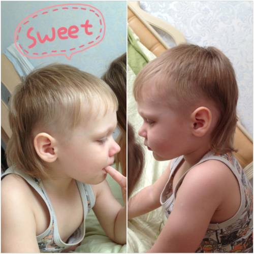 Мы на горшок просимся, но спим и гуляем в памперсе, причем они понимают, что в него можно писать, когда он одет, боюсь начать гулять без. Разговариваем мы на "детском языке", прочитала о таком, говорим предложениями, но по простяцки, например: "мама, му-му би-би бум ва-ва" - "мама, у коровы машинка сломалась", или "баба, Вова, буль-буль круг" - "с бабой и дедой (Вовой) плавали в кругах", из больших слов говорим крокодил, остальное маленькие слова - море, кони, круг, отойди, если хоть какие рисунки разного размера видят, например, два грибочка, два цветочка - это "папа или мама и ляля". Я переживаю, не хочу в садик отдавать, пока не заговорят нормально.