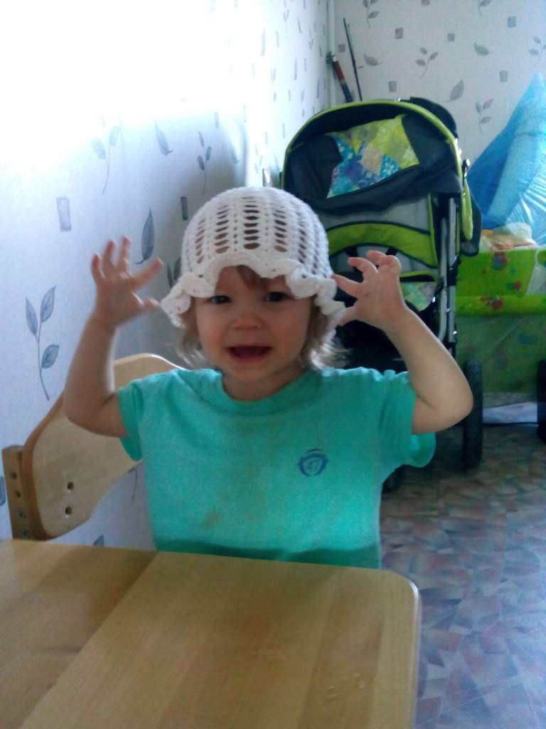 Аня, с горшком вас)) Я к ней теперь болеро хочу))) у нас из НМ платья есть к ним вообще будет отлично))) А вчера на планшете смотрела схему, Арина подходит и говорит "моя шапа"))) ждала так пока довяжу)) |