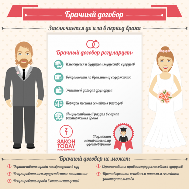 Очень познавательно.Может кто еще захочет почитать... 1. Режим имущества Супруги имеют право определить для своего имущества любой режим собственности: совместный, раздельный. Как правило, на практике применяется сочетание нескольких вариантов. Например, для недвижимого имущества супруги определяют режим совместной собственности. Квартиры, дома и дачи, автомобили – общие. Доли в совместном имуществе могут быть как равными, так и не равными (например, мужу – треть, жене – две трети) Для движимого имущества, например, бытовая техника, может быть определен режим раздельной собственности. Скажем, компьютер и холодильник принадлежит мужу, а стиральная машина, утюг и мультиварка – жене. Тут важно указать, по какому принципу будет происходить раздел имущества между собственниками. Например, в зависимости от того, на чьи средства приобреталась вещь, на чье имя была оформлена, кем использовалась вещь в повседневной жизни (глупо мужчине претендовать на женские ювелирные украшения или меховые шубы). Если речь идет об уже существующем имуществе, не будет лишним привести его полный перечень с подробным описанием каждого. Так, для земельного участка следует указать место нахождения, площадь целевое назначение, кадастровый номер. Для автомобиля – марку и модель, год выпуска, государственный номер. Если супруги планируют приобретать квартиру в кредит, важно указать это в брачном договоре, а также описать права на нее супругов, размеры долей, обязанности по оплате кредитных платежей. 2. Права и обязанности сторон договора по взаимному содержанию. Как правило, брачный контракт содержит положения содержании мужем и женой друг друга. Хотя обязанность содержать супруга в случае утраты трудоспособности и нуждаемости предусмотрена в законе, данный документ может расширить круг алиментных прав и обязанностей супругов по отношению ко другу. Например, предусмотреть больше оснований для получения материальной помощи – не только нетрудоспособность (утрата возможности работать из-за инвалидности) и нуждаемость (низкий уровень дохода, не удовлетворяющий материальные потребности), но и тяжелые жизненные обстоятельства, болезни, целенаправленные намерения (обучение в вузе) и другие основания. 3. Доходы супругов По закону не только имущество, приобретенное в браке, является общей собственностью супругов, но и доходы каждого супруга являются общими. Но в брачном договоре можно предусмотреть другой способ распределения доходов. Например, указать, что доходы каждого супруга являются его личной собственностью, которой он вправе распоряжаться по своему усмотрению. Или предусмотреть, что основной доход каждого из супругов (например, зарплата по основному месту работы) является общей, а дополнительный заработок – личной собственностью. 4. Порядок несения расходов Раз уж супруги распределяют доходы друг друга, стоит отдельно поговорить и о расходах. Причем урегулировать можно все виды расходов, включая приобретение недвижимости, погашение долгов, бытовых расходов и повседневных трат. В договоре можно предусмотреть права и обязанности супругов по расходам: • кто будет нести расходы на приобретение недвижимости, автотранспорта, мебели и бытовой техники; • кому предстоит оплачивать обучение детей; • кто возьмет на себя расходы по текущему или кап