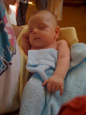 Ты это, насчет ревности, я думаю это норма такая у нас. Я свою вообще никому не даю. Папа мой тот ваще обижается, говорит внучку подержать не дают. А я не могу себя пересилить. Не хочу ему давать и все тут... , Даю только своей маме и мужу. И то под бдительным контролем. Хотя, мужу доверяю и безконтрольно)). А вчера я вообще впала в панику перед крестинами. Как ее будут там кунать, держать и проч. Удивительно, но козюля моя ваааще не плакала. Все полтора часа просидела у крестных на ручках, все внимательно слушала и куналась с удовольствием!