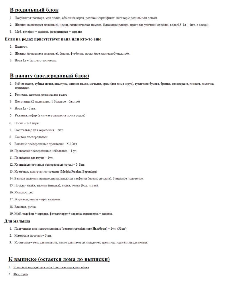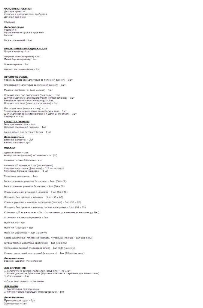 Список основных вещей в роддом