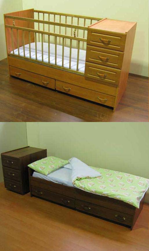 Хвастаюсь покупками, мы нашему масику кроватку купили, давно ходили на нее любовались, а то зашла с бабушкой показать, что ж мы выбрали, а мне продавцы говорят, что мол скидка на нее 15%, там косметический деффект небольшой, ну мы быстренько собрались с мыслями, освободили пространство и теперь она стоит в нашей комнате, я на нее любуюсь... Кровать-трансформер, да еще и с ящиками, вообщем то, что надо!