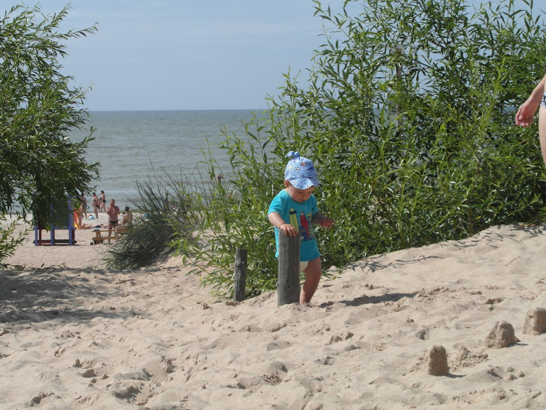Но по огромному счастью выход к морю есть. Вот наше море. Сына маленький еще такой, годика нету))) Он как раз там научился сам ходить. |