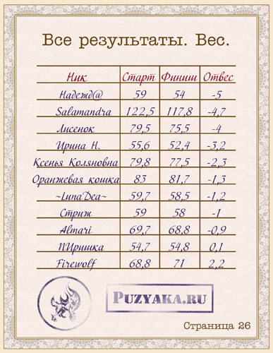 8. Если вы не можете записать результаты - нет возможности взвеситься/измериться или еще что-то, то все равно отметьтесь в отчетах. Хотя бы напишите "все без изменений", чтоб я вас не потеряла.